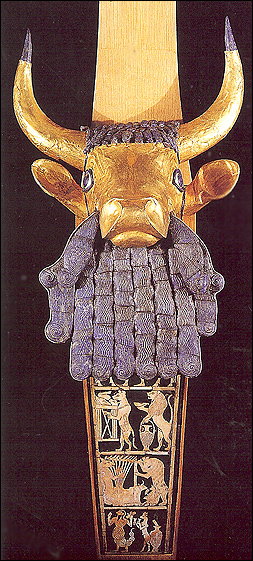 lyre (on left), which inspired our key-ring, was discovered in the late 1920’s, in the so-called King’s Grave in the Royal Cemetery at Ur. The instrument dates to ca. 2600-2500 B.C.