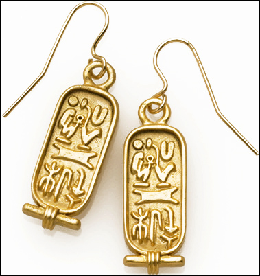Our Reproduction of a cartouche, Egyptian hieroglyphics from the tomb of Ramses second, New Empire of Egypt, 19th Dynasty. It reads: "Ra messu meri Amen", meaning: Pharaoh Ramses beloved the god Amen.