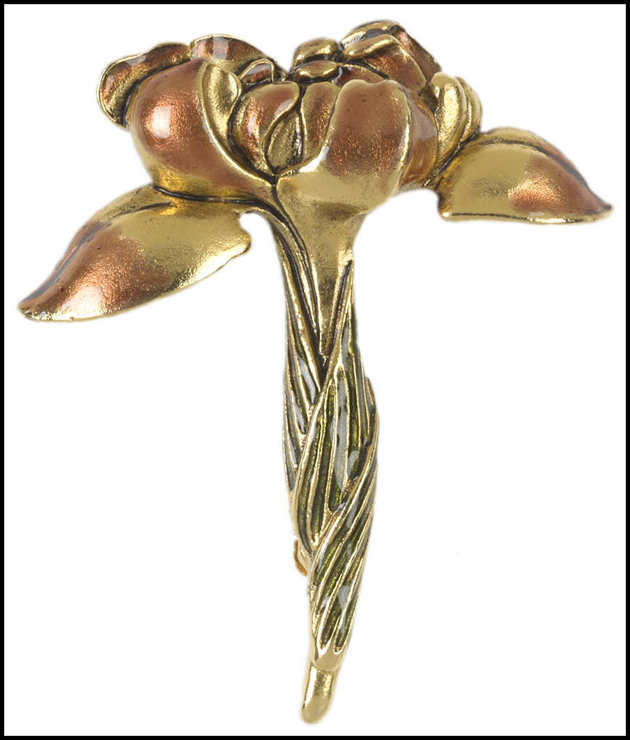 > Iris enameled brooch